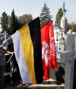 Доле на слици, приказани су активисти Србске Акције у посети спомен-костурници припадника Руске народне самоодбране (Русское народное ополчение), која се налази на београдском Новом гробљу.