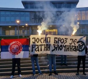 Наши активисти отишли су и до здања некадашњег „Meморијалног центра Јосип Броз Тито и Музеја револуције народа и народности Југославије“, где се налази гроб Јосипа Броза – великог ратног злочинца, окупатора Србије и мрзитеља србског народа. Ту смо развили транспарент са пригодном поруком којом исказујемо и наш захтев да се кости злочинца Броза избаце из Београда и склоне са србског тла. Њихово пребивање у Београду, јасан је показатељ да је Србија окупирана земља, а слављење дана комунистичке окупације Београда и то под родољубивим плаштом, показатељ је дубоке духовне и политичке дезоријентације данашње Србије.