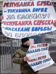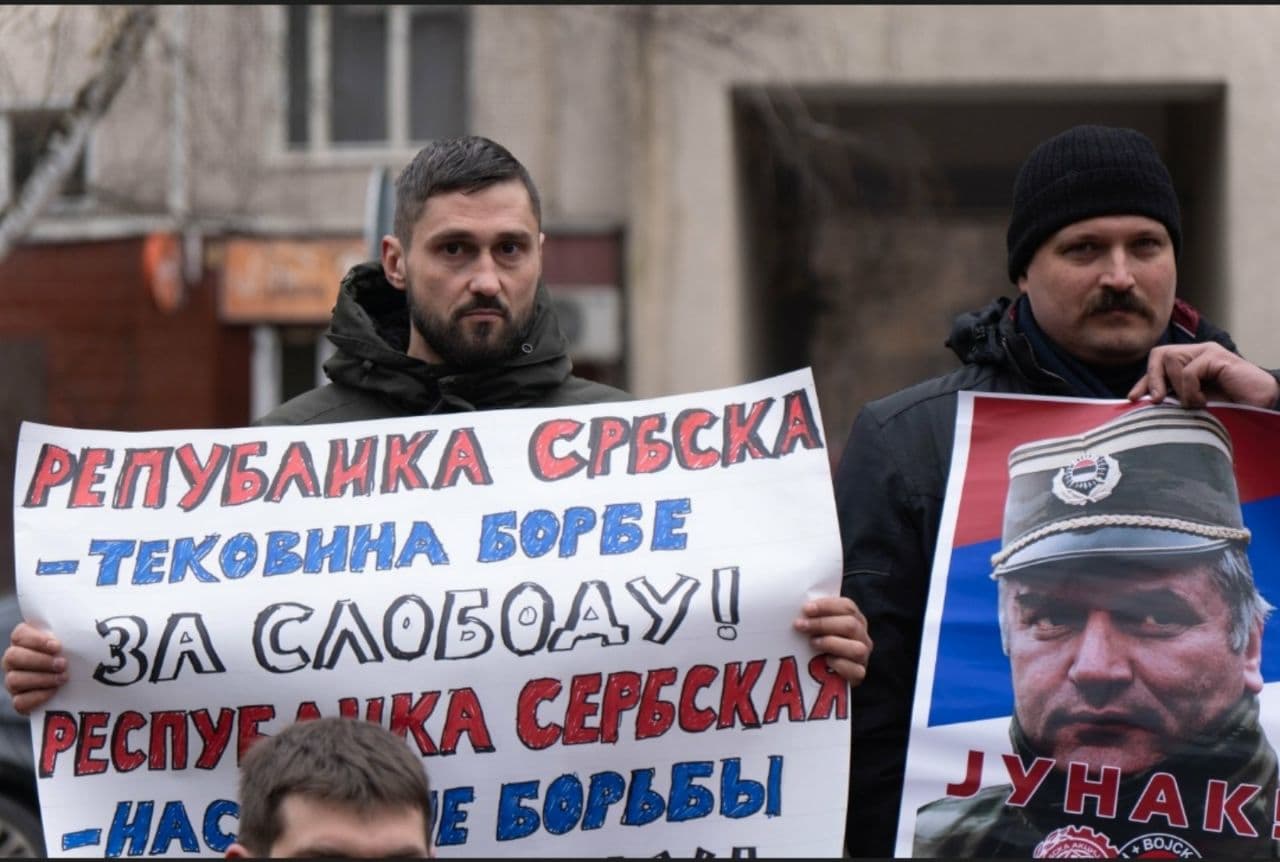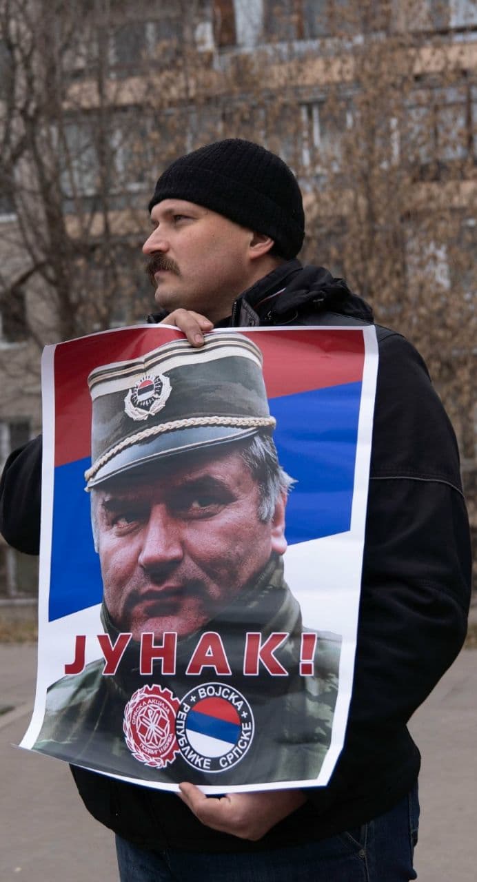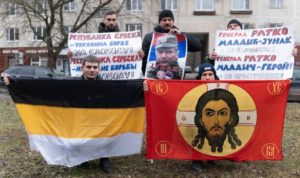 Група припадника Руског империјалног покрета (РИД) – наше братске организације из Русије, окупила се у суботу пред амбасадом тзв. државе Босне и Херцеговине (БиХ) у Москви, у знак подршке србском народу, ђенералу Ратку Младићу и у знак протеста против мондијалистичко-исламистичке србофобије. Пред здањем у којем се налази амбасада ове хибридне антисрбске квазидржавне творевине (БиХ), руски другови развили су заставе, постер ђенерала Ратка Младића са знамењима Војске Републике Србске и Србске Акције, као и транспаренте са порукама подршке Републици Србској и ђенералу Младићу.