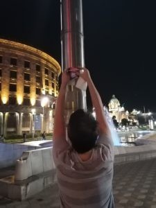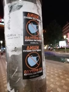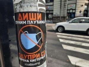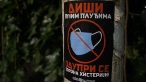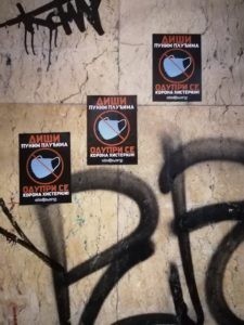 Александар Вучић, осим што је изрод и послушник белосветских хохштаплера, показао је и да је психопата који заједно са својим сарадницима попут наказе Ане Брнабић, готово садистички ужива у свом неделу – покушаја да се од Србије направи својеврсан конц-логор, а све под плаштом одбране од заразе. Јер како другачије објаснити скарадно наметање ученицима у Србији ношење маски у школамама од 01.09. ове године? Овим поводом, активисти Србске Акције облепили су центар Београда нашим новим налепницама са поруком: „Диши пуним плућима. Одупри се корона хистерији!“