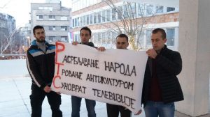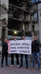 Стога су наши активисти на симболичан начин пред здањем РТС-а у Београду, истакли транспарент са поруком „РТС – Расрбљавање народа, Тровање антикултуром, Суноврат телевизије“ као и слике са примерима наказних садржаја приказаним на овој телевизији. Такође, на огради РТС-а, залепили смо поруку којом закључујемо да наметнуто и нелегитимно плаћање „претплате за РТС“ представља финансирање тровања србског народа.
