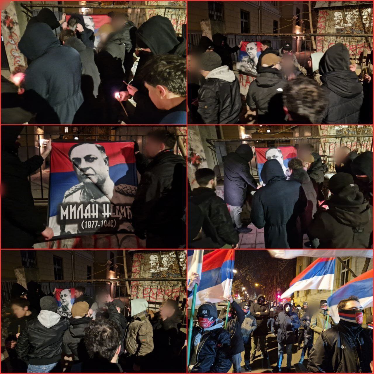 Након нашег вишесатног истрајног стајања у строју, и након што се уверила да се нећемо повући све док се са раскрснице не повуку и србомрсци, чији је број почео нагло да се осипа, полиција је почела да евакуише своје преостале штићенике – србомрсце. Затим је почела да потискује и нас и остале родољубе, али смо онда са друге стране дошли до капије здања, где смо, као и претходних година, узнели молитве и прислужили воштанице за покој душе бесмртног Ђенерала. У име читавог србског народа захвалили смо му на његовом подвигу, односно победи у тешкој борби за биолошки опстанак србског народа у тешким и крвавим данима окупације и рата.