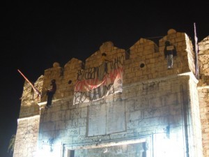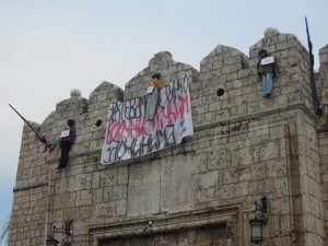 Наиме, изнад самог улаза у Нишку тврђаву, која крије једну од масовних гробница жртава црвеног терора, наши активисти су окачили три човеколике лутке, које симболишу вешане људе. На свакој лутки се налази натпис: на једној „србски студент“, на другој „србски радник“ и на трећој „србски сељак“. Порука је да су Срби свих сталежа, без разлике, страдали од комунистичких зликоваца. А изнад „обешених“ лутки постављен је велики транспарент са поруком: ЗАХТЕВАМО ИСТИНУ О КОМУНИСТИЧКИМ ЗЛОЧИНИМА!