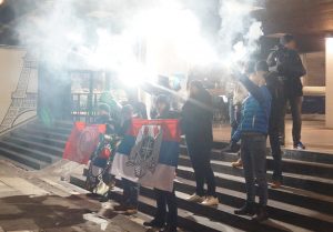 Наш чин обележавања ове велике и поносне годишњице, изведен је пред београдским Филозофским факултетом у коме је недавно група „студената“, а заправо антисрбских екстремиста, доживела фијаско у покушају да Републику Србску представи као злочиначку творевину. Стога су србски родољуби, на симболичан начин, светлима разгонили антисрбски мрак и незнање који у знатној мери руже академске институције у данашњој Србији. Истим светлима, обасјавамо подвиг и борбу србских ратника и јунака који су своју крв положили у темеље нове србске државе. Она је била авангарда анти-исламизма и данас је авангарда националне идеје у Европи. Верујући у њен напредак и борећи се за њен успон, поносно и победоносно ћемо клицати: