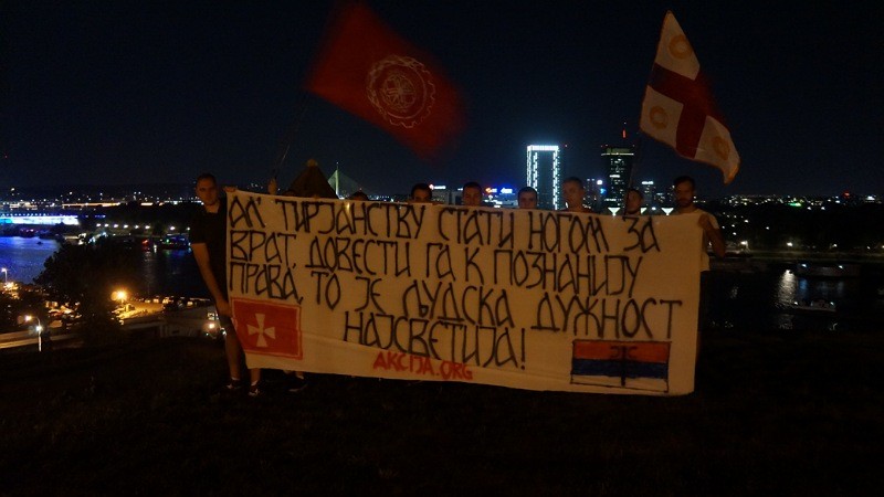 Као још један израз подршке нашем народу у Црној Гори пред предстојеће изборе, активисти Србске Акције су у Београду израдили и развили транпарент са чувеним цитатом владике Његоша о борби против тирјанства. Јер режим ДПС јесте најгори израз антихришћанске и антисрбске тираније на србском тлу.