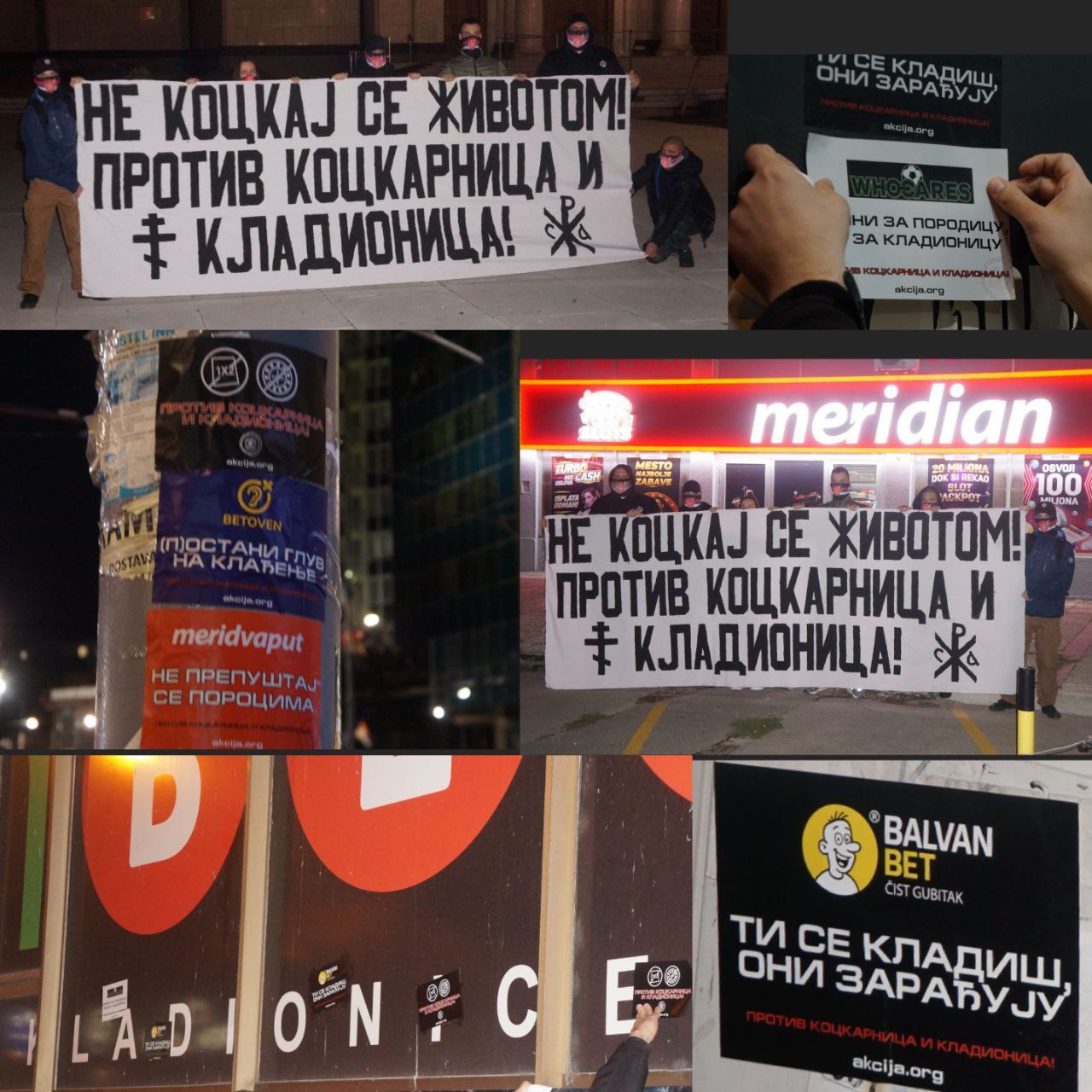 Активисти Србске Акције спровели су у Београду и Крагујевцу акцију против кладионица и коцкарница, те против текуће агресивне промоције коцкања и клађења.