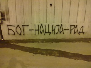 Дух данашњег времена, дух је издајничког пировања и огледало вишеслојне етичке каљуге, која већ предуго својом прљавштином загађује србске градове. У таквим условима, где се у све већој мери потискују свака доброта и лепота, делујемо ми – синови будуће србске Победе, окупљени око наших идеја и крилатица којима украшавамо наше градове, запрљане и етички и естетски. Ипак, учестале акције „ружења“ градских фасада таквим национал-револуционарним порукама, изазивају различите реакције. За душмане, то је саблазан, за неке је вулгарност, а за неке пак мелем који штрчи у мору бесмислених рекламних парола којима је ум данашњег просечног човека окован.