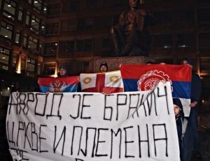 Пред спомеником владики Петру II Петровићу Његошу у Београду, наши активисти развили су транспарент са чувеним стихом овог великог и генијалног србског песника и владике, те уз бакље и заставе, послали саборачку поруку подршке свој нашој браћи и сестрама у Србској Спарти који већ месец и по дана истрајавају у борби за одбрану наших светосавских светиња од безбожне антисрбске и лоповске власти.