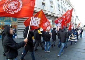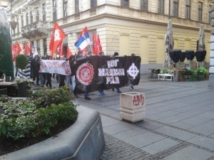 У име још једне објаве свог национал-револуционарног поклича „Бог, нација, рад“, као нове лозинке долазећих нараштаја србске родољубиве омладине, и као њен протест против свеопште издаје и распродаје наше отаџбине, активисти Србске Акције су током протеклог викенда промарширали централним београдским улицама. Знамења Србске Акције поносно су се вијорила градом деспота Стефана, пркосећи духу нејуначком, издајничком и антинародном, који је оковао наш напаћени народ, чије су савремене генерације махом заблуделе, успаване и као такве неспособне за борбу на фронту одбране Србства. А управо је наше гесло србског народног социјализма – наш поклич „Бог, нација, рад“, који својом снагом и својим смислом символише устанак против таквог наопаког духа, који је јемство актуелне политичке и друштвене стварности са којом се не миримо и против које се боримо.