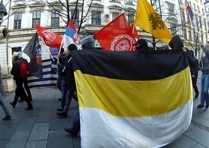 Други повод за наш протестни марш јесте солидарност са друговима из фронта грчког препорода – Златне зоре, која је упркос нечувеном прогону и шиканирању, додатно ојачала, поставши политички покрет са најснажнијом подршком грчког народа. Тим поводом, учешће на нашем маршу узео је и гост из Грчке – Јоргос Ригас, члан Извршног одбора Златне зоре, чиме нам је учинио велику част и показао пример неразрушивог православног братства наша два народа. И наш марш је несумњиво пример тога, као уосталом и пример пркоса овдашњим издајничким полтичарима, бриселско-вашингтонским марионетама у ционистичким рукама.