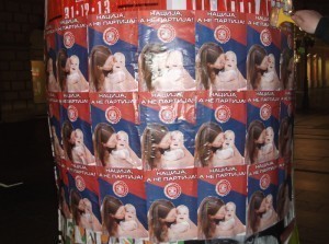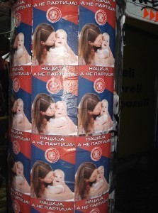 Као наставак акције промовисања органског и сталешког погледа на друштво и разобличавања деструктивног демократског система вишепартијског парламентаризма, активисти Србске Акције започели су масовно украшавање србских градова поруком „Нација, а не партија“, која је истакнута на нашим новим плакатима. Уз наш знамен на србској тробојци, плакатом доминира слика србске мајке са дететом. Таква представа символише извориште и стуб породице, која је пак најбољи символ заједништва, повезаности и љубави, насупрот партијама које су одувек символично и практично означавале подељеност, неслогу и користољубље.