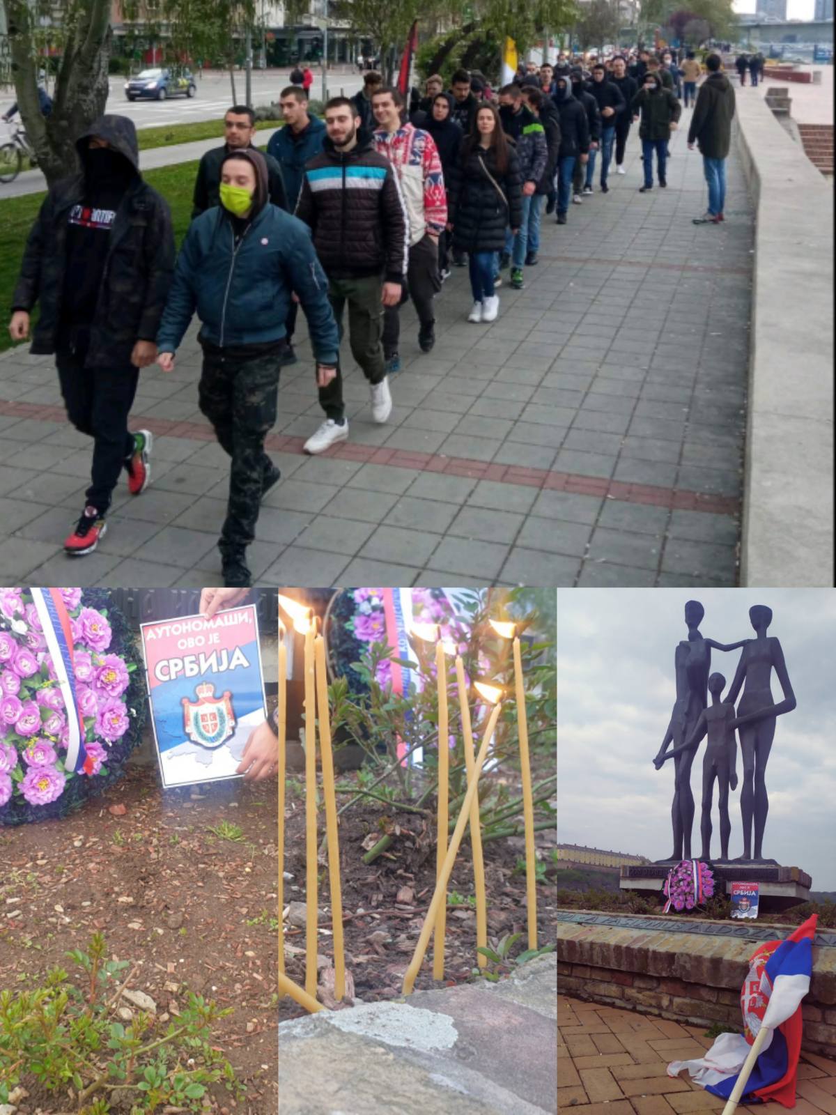 Такође, окупили смо се и у знак протеста против скрнављења и кривотворења жртава Рације од стране антисрбских сепаратиста, који своју мржњу према свему што се србско, настоје да сакрију маском тзв. антифашизма. И они су се окупили јуче, у своју медијску и партијашку свиту и уз заштиту полиције. Били су ту политикантски циркузанти попут Ненада Чанка или сподобе попут квазиновинара Дашка Милиновића. Обојица су прикладан репрезент вулгарности и изопачености србомрзаца. Милиновић је иначе бацио постављени венац србским жртвама (на шта присутни полицајци наравно нису реаговали), и то је веродостојан одраз чињенице да се распламсавање србомржње у Војводини, али и читавој Србији, чини уз покровотељство како страних - западних амбасада и других атлантистичких окупатора Србије, тако и уз помоћ антисрбског режима Александра Вучића, који уместо да гони сепаратисте и србофобе, уредно штити сваку њихову манифестацију од праведног гнева србских родољуба. Али упркос томе, нико не може спречити младу, богољубиву и родољубиву Србску Војводину, да буктињама разгони тмину србомржње и човекомржње. Јер ко се противи Богу, ко хули на светиње и ко мрзи свој народ, тај не може волети ни друге народе.