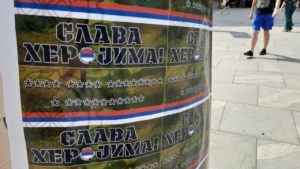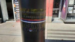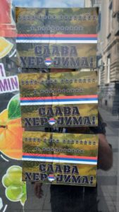 Центар Београда украшен је новим налепницама Србске Акције посвећеним измишљеном геноциду над „Бошњацима“ у Сребреници 1995. године, са поруком „Слава херојима!“, где се мисли на припаднике Војске Републике Србске који су ослободили србску варош Сребреницу јула 1995. године, као и поруком исписаном звездицама које криптују реченицу „Није било геноцида у Сребреници!“ На тај начин, симбилично смо указали на чињеницу да је ова реченица забрањена на друштвеним мрежама које су изложене тоталитарној мондијалистичкој цензури, као и да је ширење истине о Сребреници све више инкриминисано.