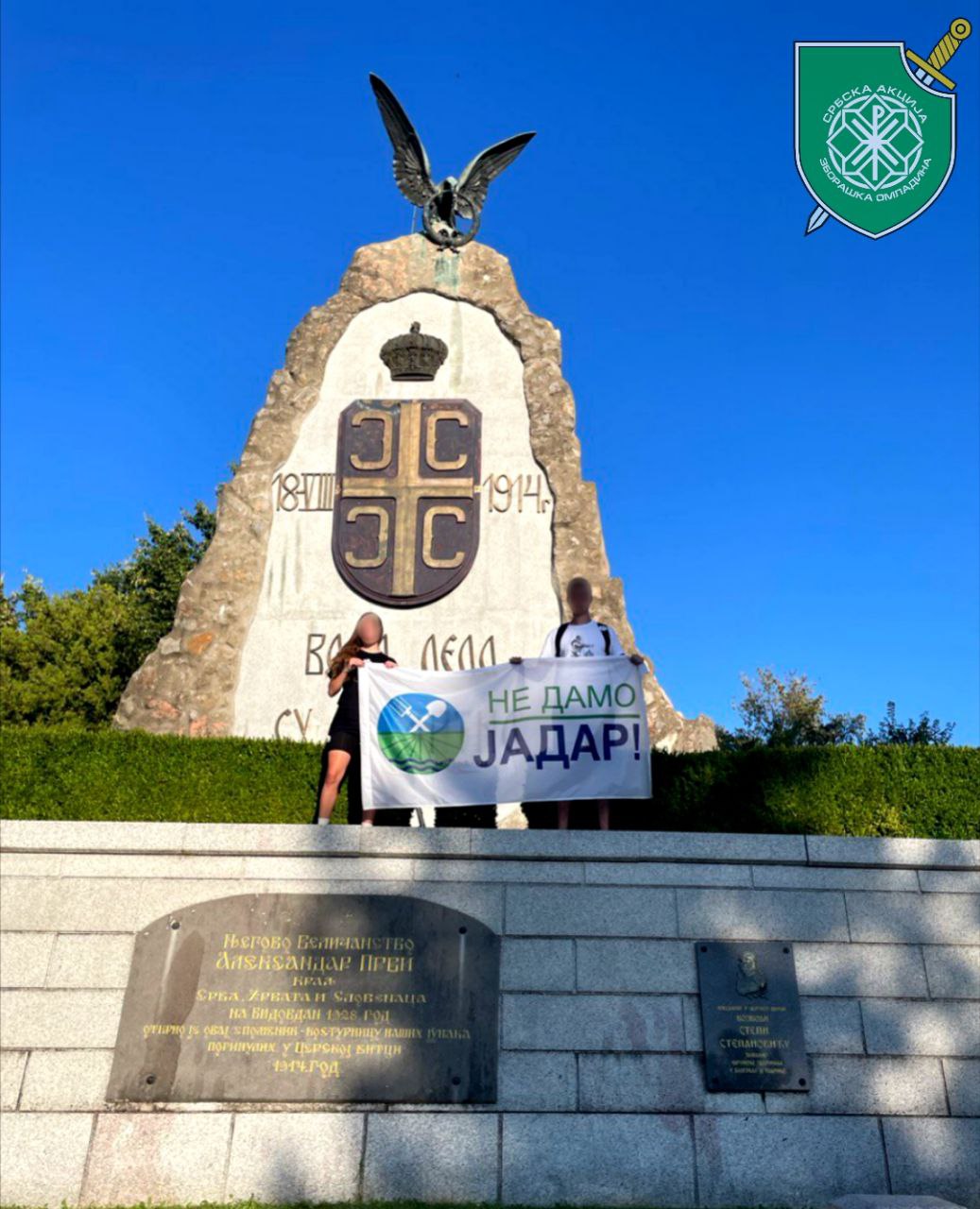 Данас, поводом 111. годишњице од јуначке победе србске војске у Церској бици, дужни смо да поново устанемо и истом силином бранимо своју Отаџбину од страних непријатеља који желе да је раскопају и униште зарад свог личног профита, док нам овдашњи издајници то све представљају као извор економског бољитка и препорода за Србију. Међутим, оно што они нама доносе јесте само пропаст наших природних богатстава и наше плодне земље. Срби и Србкиње, немојмо то дозволити, устаните и пробудите се. Зауставимо продају и издају Србије!