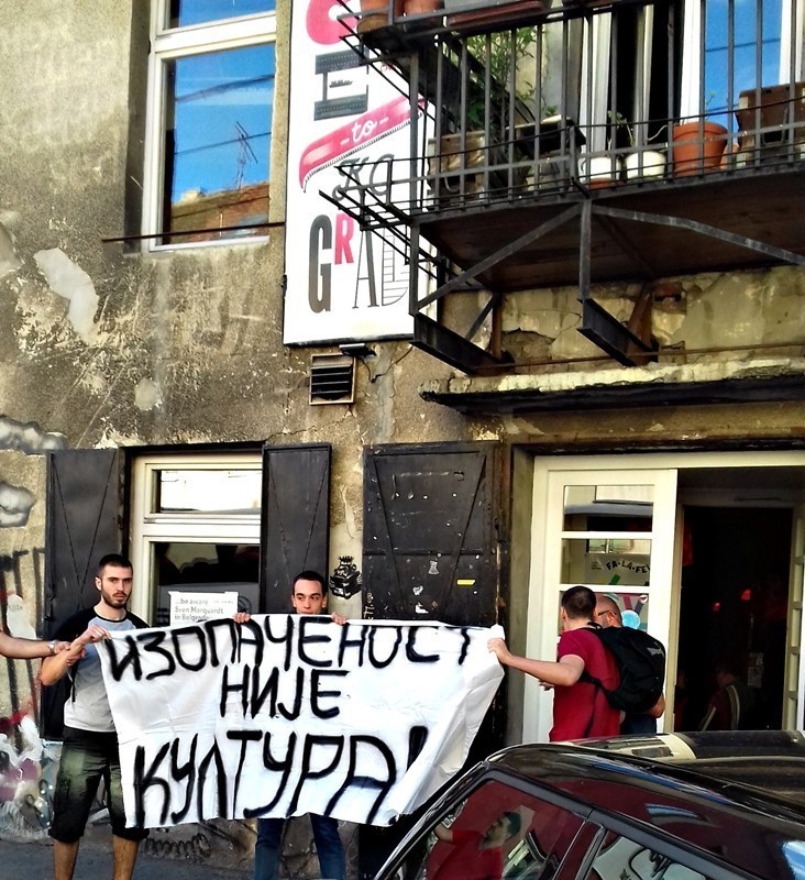 У јеку забране породичних скупова од стране властодржаца у Србији и најновијих злочина бандистске државе Израел против палестинског народа, њени представници у Србији организовали су „Фестивал израелског ЛГБТ филма“ у Културном центру „Град“ у Београду. Иза ове наказне манифестације између осталих стоји и израелска „НВО“ под називом „Хавер“, која делује у Србији и бори се за „грађанство друштво“ у Србији, а у Израелу им не смета постојећи шовинистички поредак. Ипак, планове израелским промотерима изопачењаштва у Београду, поварила је група активиста Србске Акције који су на лицу места раширили транспарент са поруком „Изопаченост није култура!“, при чему је дошло до инцидента и гурања са полицајцима у цивилу који су обезбеђивали ову накарадну манифестацију, и који нису успели да спрече наше активисте у  изражавању свог протеста против промоције изопачењаштва, које није и не може бити културна тековина!