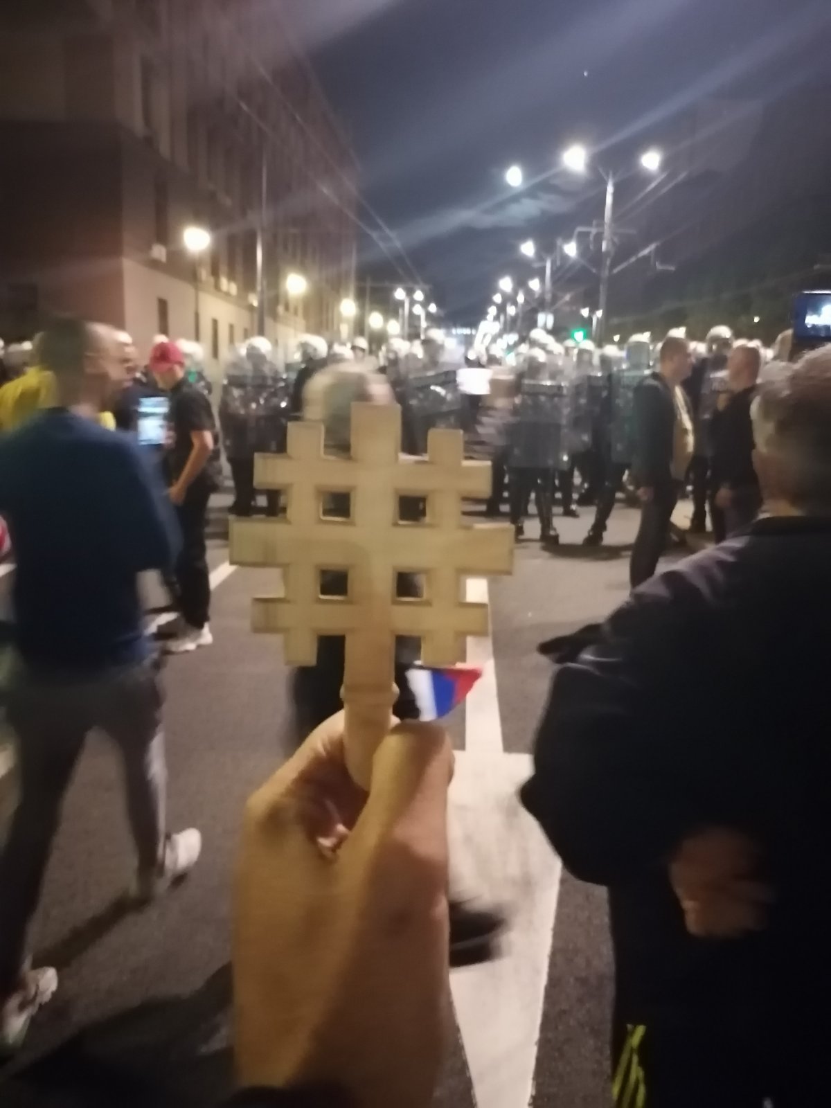 Сa превасходним циљем да се нађе што ближе јучерашњој ,,паради“ изопачењака у центру Београда, група активиста Србске Акције придружила се посетиоцима протестног скупа против најављених ковид пропусница и присилне вакцинације. А с обзиром на расположење бројног окупљеног народа, скуп је фактички имао обележје и протеста против изопачењачке поворке, и био је заказан практично у исто време када и ,,дефиле“ срама.