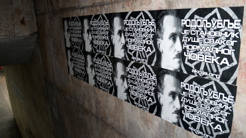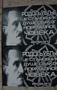 Поводом 74. годишњице погибије Димитрија Љотића, активисти Србске Акције, украсили су центар Београда плакатима са ликом Учитеља и његовим цитататом о родољубљу, које уз богољубље, представља основну Љотићеву идеју. Ова наша акција представља и одговор безочној клевети и хајци на Љотићев лик и дело, коју већ месецима хистерично спроводе неокомунистичко-мондијалистички медији, изроди, квазиисторичарски шарлатани као и политикантски паразити из власти и опозиције.