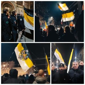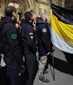 Низом манифестација широм србских земаља, србски родољуби су изразили подршку руском народу као и подршку руској војсци у текућој војној операцији у Донбасу и Украјини. Најмасовнија од поменутих манифестација, била је шетња у Београду од споменика Светом цару Николају па до амбасаде Руске Федерације, где су учешће узели и наши активисти са руским царистичким црно-златно-белим заставама. Таквим знамењем, указујемо на онај духовни и идеолошки чинилац, који мора имати руска борба како би била истински победничка. Након скупа, истакли смо транспарент пред канцеларијом НАТО пакта у Београду, са натписом на енглеском језику: „НАТО злочинци су криви за рат у Украјини!“ Тим чином, указали смо на чињеницу да су за актуелни рат и ратна страдања, криви ционистички НАТО злочинци који су украјинске сепаратисте отровали русомржњом те их користе као топовско месо у свом даљем походу на руску земљу.