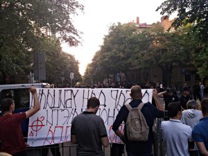 Прошле године, један наш активиста успео је и да се пробије до просторија у којој се одвија oва наказнa манифестација, изазвавши пометњу међу овим антисрбским провокаторима, док је ове године тако нешто било немогуће јер је полиција опсежно блокирала све прилазе локацији на којој се овај антисрбским пир одржава. Али такав след ствари, ни мало нас неће поколебати. Напротив, чињеница да антисрбска окупација Србије постаје све отворенија, све више чини да ствари постају до те мере кристално јасне да се свако ко је макар и равнодушан према актуелном режиму, може третирати као поборник поменуте антисрбске окупације.