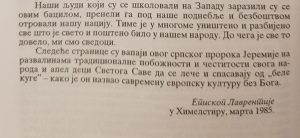 Па затим, у делу „Србски народ као теодул“, Владика пише: