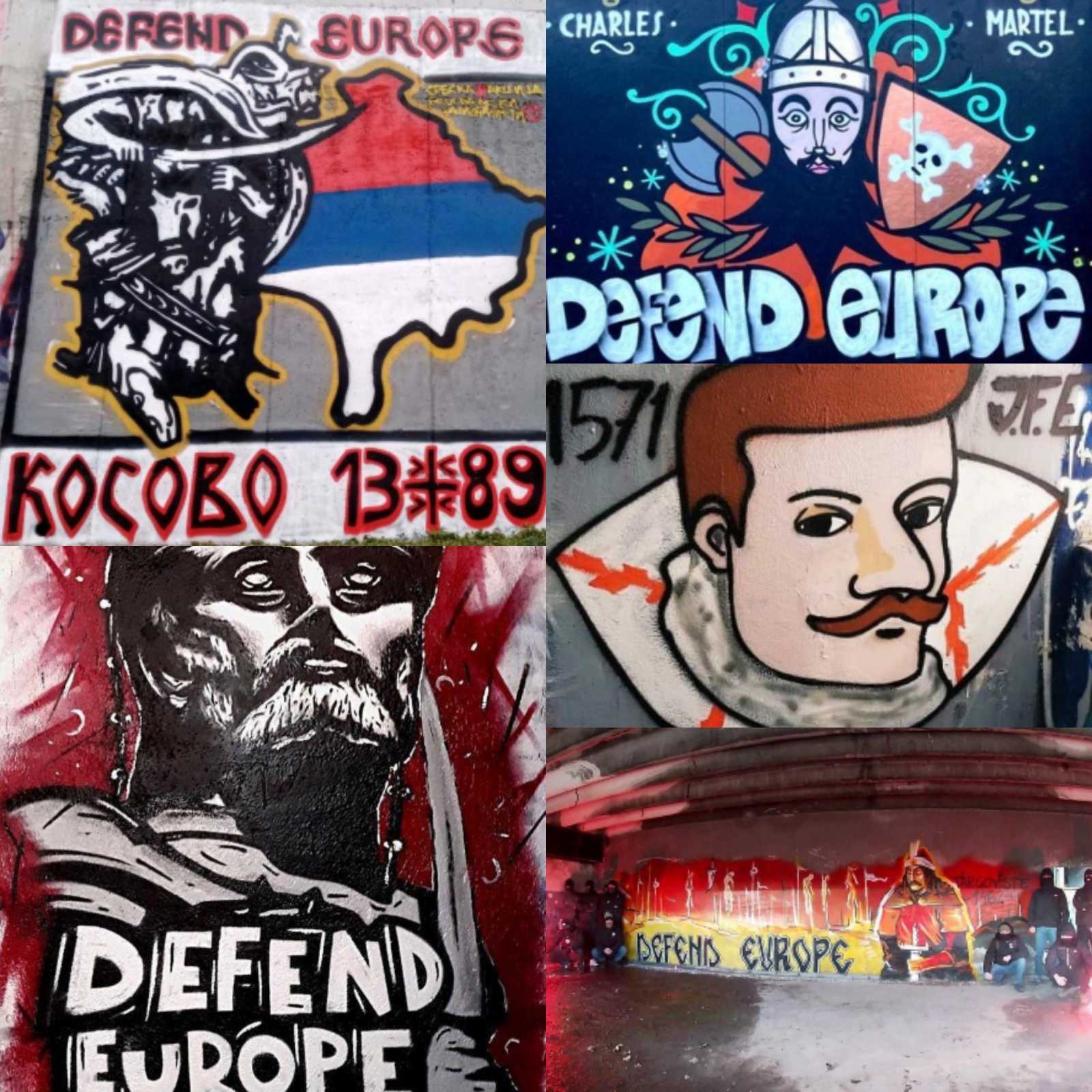 Заједнички са друговома из Румуније, Грчке, Француске и Шпаније, одрађена је општеевропска родољубива акција, где су под паролом „Defend Europe“, зидови и улице више европских градова, украшене муралима са историјским јунацима одбране хришћанске Европе од исламске најезде. Румунски другови су насликали лик Влада Цепеша – Дракуле, грчки другови – лик последњех византијског цара Константина XI Палеолога Драгаша, француски другови – лик Карла Мартела, а шпански другови су свој мурал посветили битки код Лепантеа и Хуану де ла Крузу.